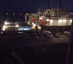 Приехали вечером, когда уже было темно и утром ждал сюрприз по виду из окна: на корабли (молодой человек любитель посмотреть на корабли поэтому от окна с утра практически не отходили)))))