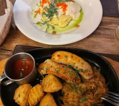 По еде ничего не скажу, не ели, только взяли квас (хороший), пиво разбавлено)