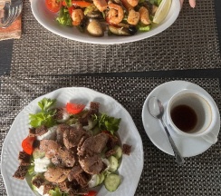 Заехали перекусить, вкусный шашлык и в целом кухня. Блюда не маленькие, ценник средний. Приятные места, как на открытом воздухе так и внутри 👌
