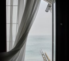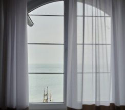 Уютный номер, удобная кровать, прекрасный вид на море.