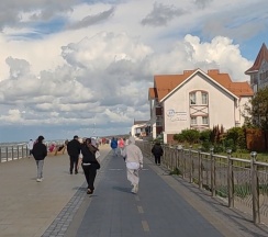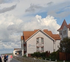 Мой мужчина заявил: "Сегодня мы уснем с видом на это необузданное море!" Для этих целей отправились в Зеленоградск, так как там нам приглянулась одна гостиница на букинге.