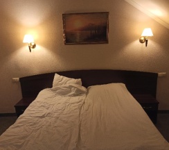 Ставлю 4, т.к забронировала номер с двуспальной кроватью (или полуторной, как они ее называют) , и в особых отметках указала, что нужна именно широкая кровать. Но меня заселили в номер с односпальной кроватью, после моей просьбы переселили в другой номер. В новом номере были пятна на ковролине . Неприятно, но в целом чисто. Номер для одного человека , двоим не развернуться. Есть шампунь и гель для душа. Одноразовые тапочки. Полотенца. Чайник и пакетики чая.