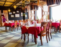 Номера с прямым видом на море, расположение в центре Светлогорска, очень добротный ресторан на первом этаже, где можно отужинать любуясь волнами под треск камина, большая лаундж-зона с билиардом и также видом на морскую гладь.