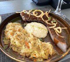 Обедали в ресторане "Лес" на Куршской косе. Заказывали строганину и судака, очень вкусно! Шеф-повару 5+
