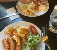 Завтраки, подкачали, скудный выбор, если что-то кончается, то не спешат обновить. Один раз пришлось убрать грязную посуду, т.к. она была на всех столиках