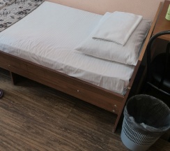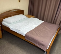 Номер был после ремонта, матрас очень удобный, в номере телевизор, холодильник, шкаф , стол, зеркало. В туалет женский на 4 этаж надо было подниматься, на моём этаже он не работал, но за это звезду не снимаю, т.к.видно, что в отеле ремонт идёт. Душевые и туалеты после ремонта, чистые, без запаха. Удобно, в центре города, до вокзала пешком 15 минут неторопясь можно дйти.
