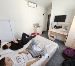 Останавливалась на 6 ночей в стандартном номере. Всё было отлично! Заезжала ночью, дежурный администратор встретил и проводил. Персонал приветливый и отзывчивый. Всё чисто, ремонт свежий, кровати и сантехника в отличном состоянии. На первом этаже есть кухня с посудой, в коридоре кулер с водой. Расположение очень удобное для прогулок по историческому центру города. В пяти минутах ходьбы супермаркет, аптека, автобусная остановка. Большое спасибо сотрудникам за такую хорошую работу!