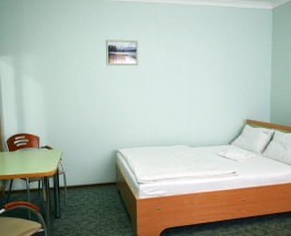 В номере одна комната: спальня с 2-х спальной кроватью и обеденной зоной, телевизор, холодильник, санузел с душевой кабиной.