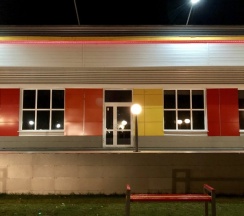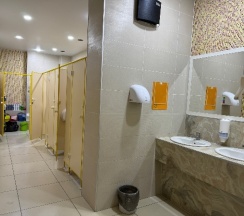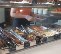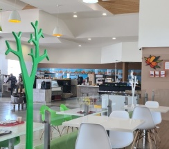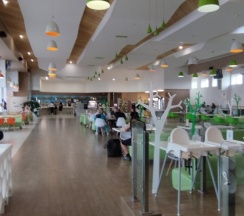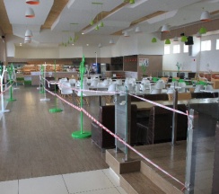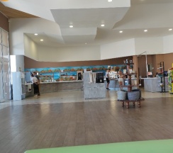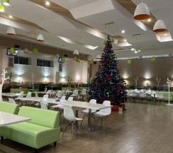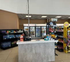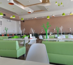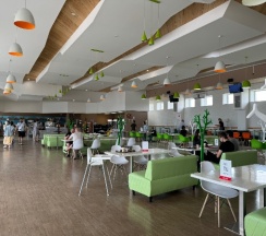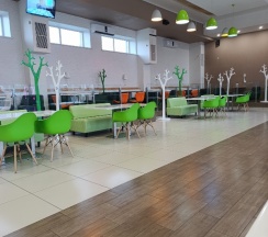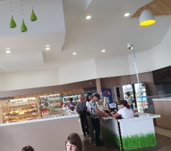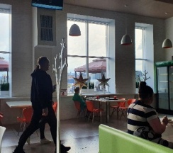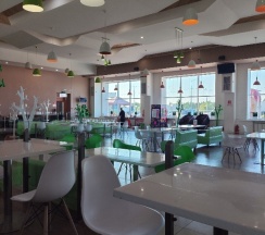 Чисто, есть площадка для детей, нормальный туалет. Гриль бар не работал. Кухня оставляет желать лучшего. Но перекусить можно. Чек на двоих 800 рублей (2 салата, горящее, сок).