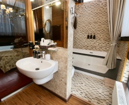 Однокомнатный двухместный номер с двухспальной кроватью и джакузи.