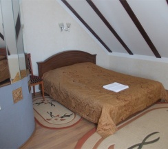 Номер исполнен в классическом стиле в бежевых тонах, с зеркальной стеной. В номере имеется всё, чтобы полноценно отдохнуть после дороги: двухспальная кровать, телевизор, журн. столик, два пуфика, сан.узел, душевая кабина,ковровое покрытие.Wi-Fi