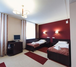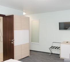 Два номера этой категории расположены в одном блоке. На каждый блок есть один полный (туалет, раковина и душ) санузел. В номере две односпальные(80*2000см) кровати, письменный стол, телевизор, кресло, шакф. В таком номере могут размещаться члены организованных групп (спортивные команды, творческие коллективы, туристические группы и т.д.). Размещение в данных номерах позволяет минимизировать затраты на проживание в гостинице и одновременно получить все необходимое для комфортного проживания.