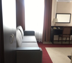 Комфортабельный и просторный номер. В этом номере может разместиться как деловой турист, имеющий повышенные требования к проживанию, так и семейная пара. Номер оснащен всем необходимым для комфортного проживания и работы. В номере применены современные отделочные материалы, использовано высококачественное сантехническое оборудование, используется качественное постельное белье.