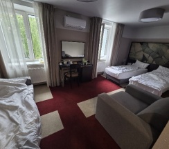 Отличный отель, нам очень понравился. Приехали на выходные вместе с командой на турнир по футболу. Взяли номер-студия, номер понравился, чистый, просторный, в номере есть все необходимое. Завтраки, обеды, ужины вкусные, приятный персонал. Рекомендуем