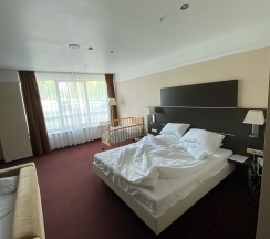Недавно остановились в отеле “Космос” с первого января 2026 года, и это был просто идеальный выбор! Номер был просторным, чистым и уютным — свежий ремонт, удобные кровати с ортопедическими матрасами, на которых выспались на славу. Вид из окна на храм просто потрясающий 🙏🔥, особенно вечером с подсветкой.