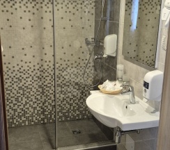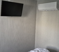 Номер «Бизнес с двухспальной кроватью» по размерам маловат, мы были с мужем и ребенком 7 месяцев. В номере на полу уложен ковролин. Душевая кабина сборная, маленькая, не развернешься в ней. Полотенца и постельное белье белое и чистое. Кондиционер в номере есть, но нам не довелось им воспользоваться, т.к. температура воздуха на улице была 20 градусов. Телевизор работает, чайника в номере нет, есть кулер с водой в коридоре. Кровать очень хорошая, мягкая и удобная, подушки мягкие и комфортные, одеяло легкое и теплое.