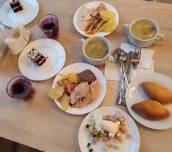 И ещё про завтраки: спускаться лучше попозже, когда первый наплыв гостей схлынет. Столиков мало, места всем не хватает — приходилось ждать.