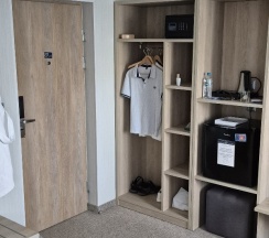 За свои деньги хороший отель. Номер стандартный для одного достаточно компактный. Телевизор, холодильнике, фен имеется. Ночью не душно и не холодно. Вода горячая с нормальным напором. С утра шведский стол как обычно. Защелка на двери её хотела закрываться почему-то, проверяйте заранее этот момент
