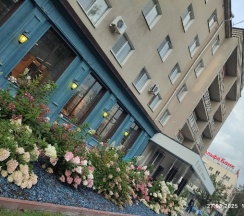 В принципе, мне нравится эта сеть отелей, воспользовалась уже в четвертый раз. Была в этой сети в Казани и два раза в Уфе, и, вот, теперь Ижевск. Сейчас речь пойдет именно об отеле в Ижевске. Из плюсов - расположение. Самый центр! Свежий ремонт в коридорах и номерах. Наш номер был на 4 этаже, к номеру претензий нет. Нравится питание, всегда в этой сети отелей берём полупансион - завтрак и ужин, и это выходит, на мой взгляд, гораздо удобнее, чем, если бы мы бегали искали столовые по округе, да и дешевле, поскольку, отель предоставляет разного вида скидки. Для тех, кто не в курсе, можно ещё сэкономить 5 % от стоимости проживания, если оплатить налом. Минусы: тесное помещение столовой, при полном заселении отеля в столовой не хватает столиков, уходишь в номер и ждёшь, когда народ разойдется. Вызывает недоумение ужин: иногда шведский стол - отлично, разнообразно, вкусно, много всего, или , если мало постояльцев в отеле, комплексный ужин- приносит официант: салат, второе блюдо напиток и маленький десерт ( выбираешь тогда из трёх вариантов). Но, стоимость шведского стола и комплексного ужина, не одна и та же, 800 руб из расчета на одного человека шведский стол вполне оправдывает, но, комплексный ужин??! Которым и не особо наедаешься??! Администрации стоит учесть этот момент! Надеюсь, что ситуацию со шведским столом и комплексным ужином, как то пересмотрят не только в этом отеле, а во всей сети. Больше всего неприятно удивило то, что халаты предлагались за плату, однако, например, в той же сети отелей, но, в Уфе, халаты предоставлялись бесплатно в любом номере, а не только в люксе. Были ещё незначительные минусы, но мы на них внимание сильно не акцентировали и они на хорошее мнение об отелях этой сети не повлияли. Тем более, что администрация отеля проводит опрос после выезда и всегда пытается выявить отрицательные моменты, на которые указываешь и взять их в работу, дабы пытаться улучшать обслуживание.п.с. инет в номере был! Отель к проживанию рекомендую 👍
