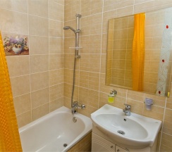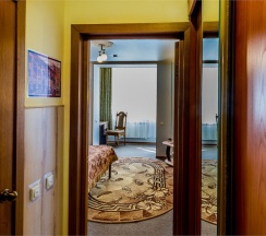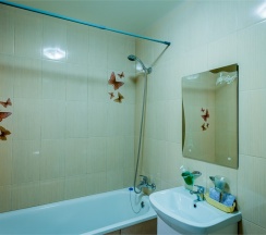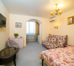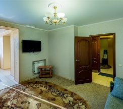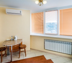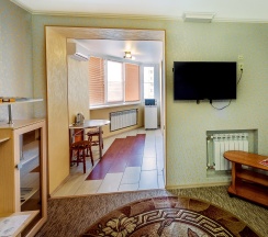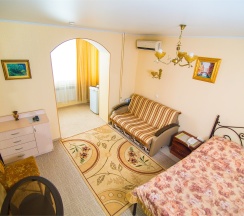 Номера - это просторные квартиры в этом доме с новым ремонтом. Мы на семью из 5 человек взяли два номера, но могли с комфортом разместиться и в одном.