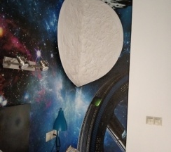 Номер в гостинице достался на космическу тему. Класс. Даже шторы со звездами.