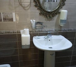 Осталось двоякое впечатление от этого отеля. С заселением всё замечательно, быстро. Номер большой, две спальни и гостиная, туалет-душевая. Вроде бы есть все условия, но чувствуется, что мебель, постель, полотенца староваты. Нет ощущения свежести, когда заходишь в номер. В душевой нет полочки, чтобы положить принадлежности. Есть биде. В гостиной чайник, набор посуды. Завтрак выбирать нужно из 4х предложенных. Завтрак на первом этаже в столовой. Мы выбрали №1, вкусно, НО принесли вилки грязные, между зубьев налипшая еда. Я постеснялась сказать, пошла в номер и отмыла. Так не должно быть! Чистота не зависит от цены. Чисто должно быть и в дорогом отеле, и в отеле попроще. Кофе растворимый, есть чай в пакетиках, сахар.