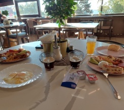 Старомодная мебель,светильники и сантехника, деревянные рамы. Общая "усталость" номера. Постельное белье идеально белое. Столовая с неплохим выбором завтраков, вкусно