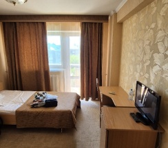 Шикарный вид. Гостиница экстра класса! Собственная столовая с вкуснейшими блюдами. Распоряжение удобное и для прогулок и для отдыха! Рекомендую!!!