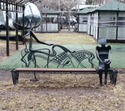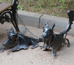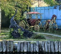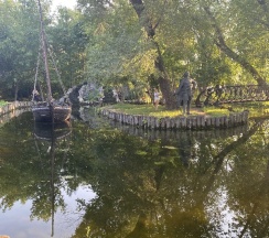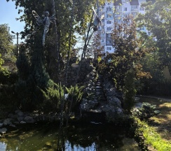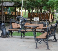 Крутой парк. Очень много кованых фигур и разнообразных скамеек. В ресторане доброжелательные официанты и разнообразное очень вкусное меню.