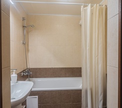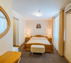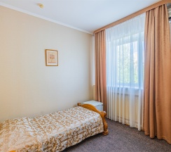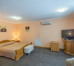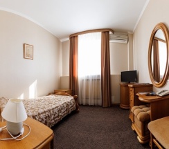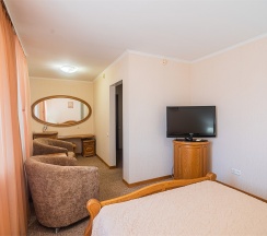 В номере имеется все необходимое для комфортного отдыха. Номер рассчитан на проживание одного или двух человек и имеет одну двуспальную кровать, оснащен сплит-системой, имеет отдельную туалетную комнату с ванной. К услугам наших гостей телефон, телевизор, холодильник, интернет. В стоимость номера входит завтрак с 7:00 до 10:00, крытый бассейн (в зимний период) с 7 до 9 и открытый бассейн в летний период с 10:00 до 21:00.