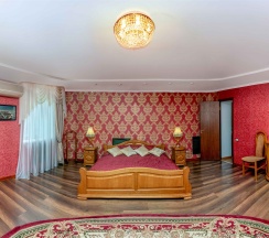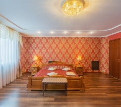 Номер состоит из каминного зала, спальни, гардеробной, ванной комнаты с душевой кабиной. В номере имеется все необходимое для комфортного отдыха. Рассчитан на проживание одного или двух человек и имеет одну двуспальную кровать, В каминном зале имеется все необходимое как для приятного отдыха, так и для ведения деловых переговоров. Номер оснащен сплит-системой, имеет телефон, телевизор, холодильник, интернет. В стоимость номера входит завтрак с 7:00до 10:00, крытый бассейн (в зимний период) с 7 до 9 утра и открытый бассейн (в летний период) с 10:00 до 21:00
