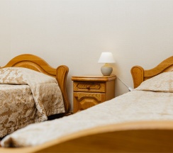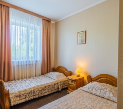 В номере имеется все необходимое для комфортного отдыха. Номер рассчитан на проживание двух человек и имеет две кровати, оснащен сплит-системой, имеет отдельную туалетную комнату с ванной. К услугам наших гостей телефон, телевизор, холодильник, интернет. В стоимость номера входит завтрак с 7:00 до 10:00, крытый бассейн (в зимний период) с 7 до 9 утра и открытый бассейн (в летний период) с 10:00 до 21:00.