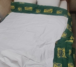 Был двухместный номер, с двухспальный кроватью, маленький холодильник в номере, телевизор. На постели были волосы и пятна на простони, для нас не критично, постелили свое постельное белье. В номере было прохладно спать. Кондиционер был в номере, но не проверяли работают ли он. Утром проблема с водой, у отеля своя скважина, утром много постояльцев, на третий этаж вода на доходила.