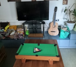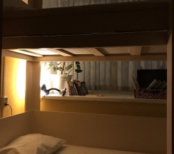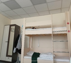 Поздний заезд, со звонком приняли отлично, администратор вежливый, кухня чистая с посудой, санузел и душ чистые, если поедете берите тапки, тапки платные. Есть общая зона для общения и отдыха, навалом книг и игр, в хостеле было комфортно по температуре, не смотря на жару. Видно что убираются, следят за чистотой. Белье хоть не новое, но чистое и выглаженное. Матрасы хорошие, мягкие. Выспался, хорошо отдохнул.