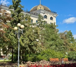 Красивая гостиница, с просторными, удобными номерами. Чисто, приветливый персонал, вкусные завтраки, в номере все что нужно для комфортного проживания имеется. Гостиница построена в 1956 году, реконструкция производилась в конце 90-х. Сохранили стиль сталинского неоклассицизма. Кто любит такой стиль, вам понравится. Меня порадовал настоящий паркет.