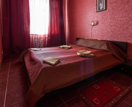 Двухкомнатный номер, зал и спальная комната. Тематическое оформление каждого номера. На выбор номера "Гранат", "Подсолнух", "Розалия". В номере телевизор, холодильник, кондиционер, телефон. Душевая комната с набором косметики, туалет. Wi-Fi бесплатно.