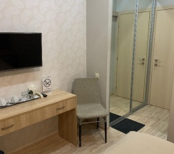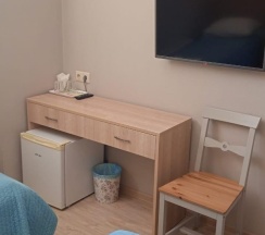 Уютный отель близко к центру города. Рядом есть транспортные развязки пригородного поезда, троллейбуса, автобуса. В самой гостинице очень уютно: аккуратные, чистые номера, общая кухня, два душа. В нашем номере был вместительный шкаф, холодильник, телевизор, тумбочки. Сотрудницы отзывчивые – на все наши просьбы откликнулись, и помогли решить. Отдельное спасибо за приятные глазу цветовые решения при оформлении номеров и общих зон :)