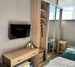 Заселились в отель на одну ночь. В целом картина хорошая. Есть обеденная зона. Комната чистая, уютная. Единственное, было очень холодно, так как почему-то не работала батарея. Но администратор быстро сориентировалась и предоставила нам хороший обогреватель, который согрел комнату. Постельное белье чистое, пледы тоже. Кровати очень мягкие и удобные. Спать, одно удовольствие. Еще около каждой кровати очень милые и удобные светильники. Снижаю оценку на 1 звезду, так как в душевой очень плохо уходит вода и к концу мыться ты стоишь по щиколотку в воде. И еще немного если постоять с включенной водой, то она полилась бы через бортик. В целом, все хорошо. За свои деньги нормально.