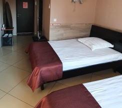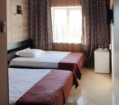 Однокомнатный номер, включает: в себя спальню с двумя кроватями 160*200см, тумбочку, ванную комнату с душевой кабиной. Техническое оснащение: телевизор, холодильник, чайник, кондиционер, Wi-Fi.