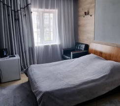 Однокомнатный номер, включает: в себя спальню с кроватью 180*200см, кресло, тумбочку, ванную комнату с душевой кабиной. Техническое оснащение: телевизор, холодильник, чайник, кондиционер, Wi-Fi.