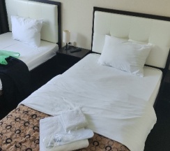 Хороший отель, снимаю звезду за очень жесткие кровати. А вообще, все чисто, аккуратно, видно, что следят за порядком. Есть тапочки, мыло, шампунь, мыло, з/щ . Чистое постельное, кондер, холодильник. Не знаю как остальной персонал, но администратор 24авг была ооочень обходительная и услужливая.