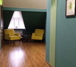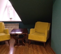 Небольшой отель в оздоровительно-развлекательном комплексе. Номер просторный с красивым ремонтом. Повезло, постельное белье новое, как раз перед нашим заездом обновили текстиль в отеле. У администратора можно приобрести зубной набор, если надо. Отдых был действительно спокойным. Перед зданием просторный паркинг. Этажом ниже бильярдный клуб, где можно вкусно пообедать и поужинать (бургеры лучшие из всех, что мы пробовали), на первом этаже есть общественная баня и сауна. Единственный минус - нет лифта ( отель на 4 этаже) но для нас это не проблема.
