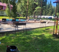 Отличная база! Места много, заняться есть чем. Домики большие, уютные, чистые, беседки удобные. Администрация на высоте, кухня классная, домашняя. не понятно, кому порции маленькие, мы еле из-за стола вылезали, и мы не хрупкие, муж -качок, поесть любит)). Баня жаркая, бассейн чистый. Спасибо за отличный отдых!