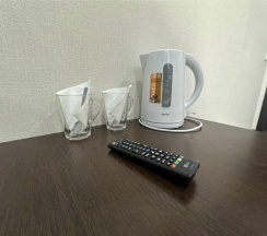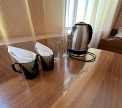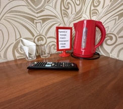 Категория номера: полулюкс. Одноместный номер.Двуспальная кровать, душевая кабина, санузел, столик, пуфик, чайник, телевизор.