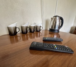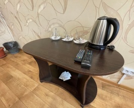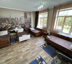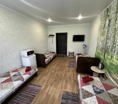 3 полуторные кровати, тумбочка, столик, чайник, телевизор, Wi-Fi.