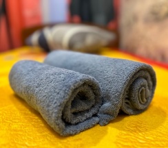 В душе пакетики с гелем и шампунем. Полотенца чистые, в наличие оказались даже одноразовые тапочки!