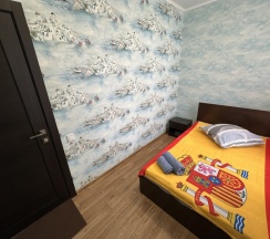 2 полуторные кровати, тумбочка, санузел с душевой, столик, чайник, телевизор, Wi-Fi.