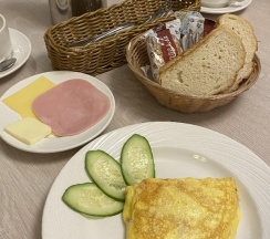 Неплохой отель, но при заселении было ощущение, что администратор гостям не сильно рада. Завтрак был свежий и вкусный, но к каше хотелось бы какой-то топинг - фрукты, банан, орехи, например. Номер с 2мя кроватями большой, но кровати при этом узкие и короткие (моим 173 см, с учётом подушки, было неудобно, стопы висели). Подушка это отдельная боль - очень высокая и дубовая, спала без неё. Также, в ванной не хватило какой-то полки, фен или косметичку положить некуда. И салфеток не было, хотя они всегда нужны