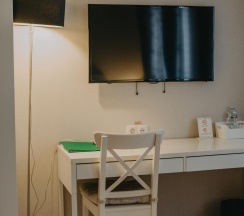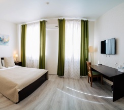 В номере: двуспальная кровать, гипоаллергенные постельные принадлежности, холодильник,телефон, кондиционер, телевизор, сейф, собственная ванная комната, фен, туалетные принадлежности, рабочее место (письменный стол и стул)