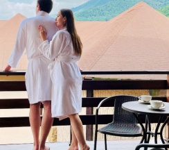 Отличное место ,вкусные завтраки,вежливый персонал ,в номерах чисто,предоставляются все необходимые вещи и средства личной гигиены,бассейн ,сауна, для детей круг и нарукавники бесплатно,что в свою очередь не может не радовать,спасибо за уют💜 с шикарными видами с утра и с вечера !!!